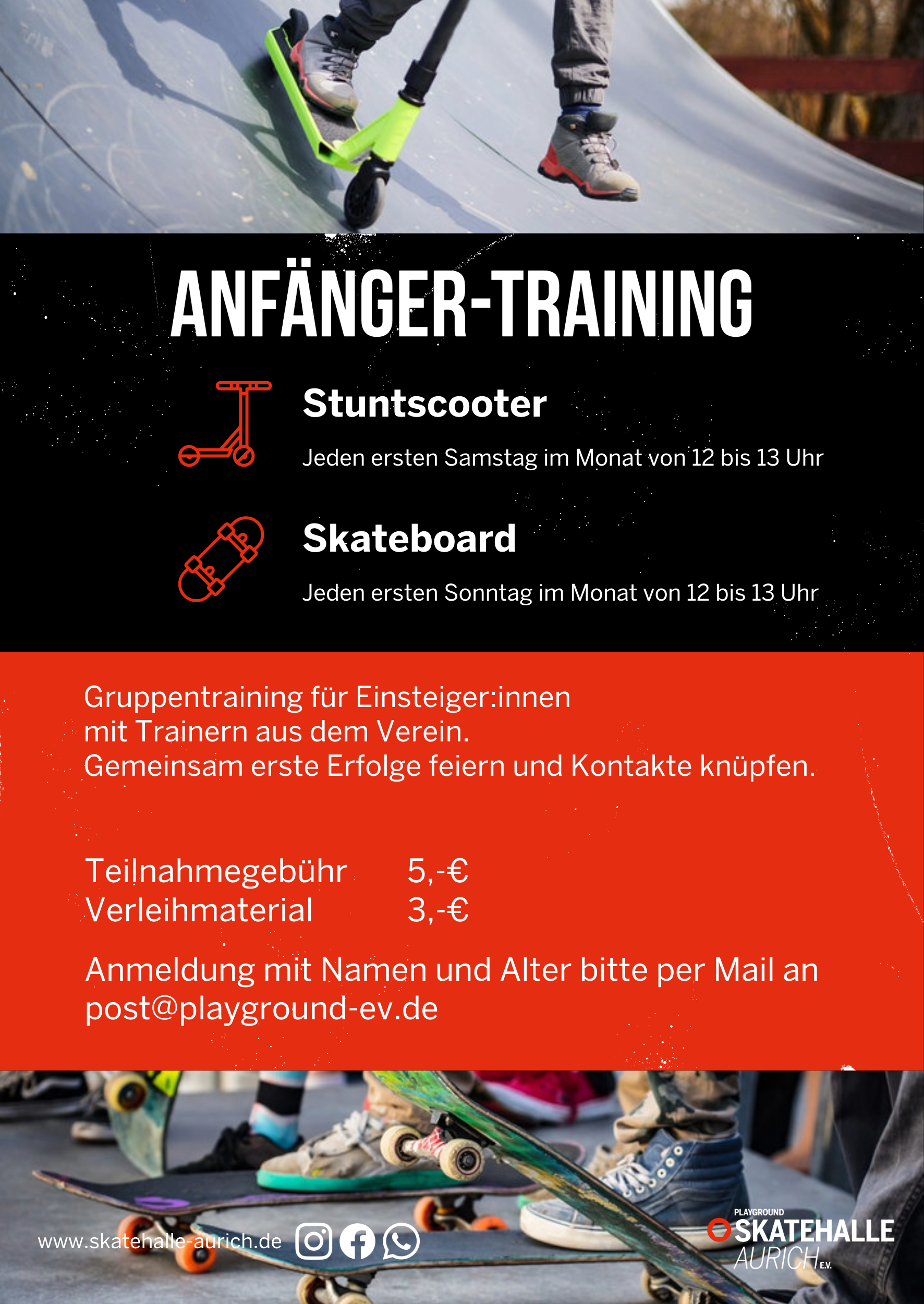 An jedem ersten Wochenende im Monat bieten unsere Trainer ein Gruppentraining an. Hier lernt ihr die Basics des jeweiligen Sportgeräts, knüpft Kontakte und feiert gemeinsam erste Erfolge.